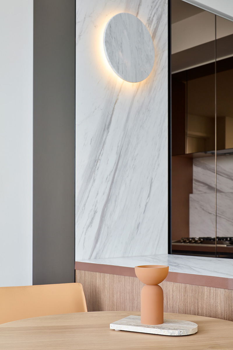 The cool finish of metal tapware adds a contemporary designer touch and the warmth of timber floorboards is all about indulgence. Your city apartment living is luxurious, with glass and mirror splashbacks that sparkle with sleek urban style, in a space that is ideal for entertaining.